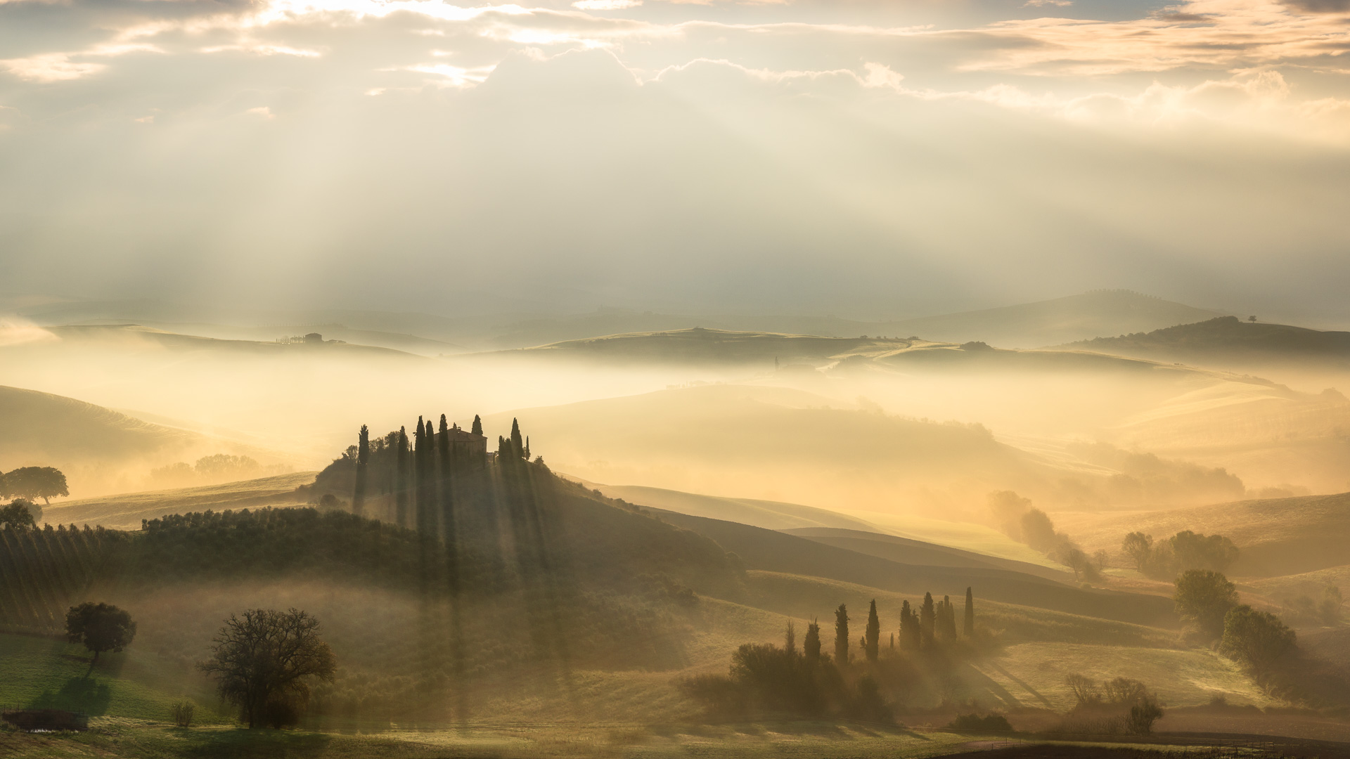 Die toskanische Landschaft ist durch ihre sanften Hügel, die von Weinbergen, Olivenhainen und Zypressenalleen durchzogen sind, unverwechselbar. Historische Dörfer und Villen, die sich harmonisch in die Natur einfügen, verleihen der Region zusätzlichen Charme. Die Farbpalette der Landschaft wechselt mit den Jahreszeiten von sattem Grün im Frühling und Sommer zu warmen Gold- und Rottönen im Herbst. Diese Kombination aus natürlicher Schönheit, landwirtschaftlicher Tradition und kulturellem Erbe macht die Toskana einzigartig und zeitlos.